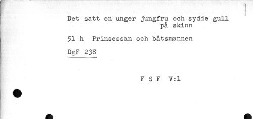 //// ' ' . . ' - ' . ^ ' . ..... //// Det satt en unger jungfru och sydde gull //// på skinn //// $1 h Prinsessan och båtsmannen //// DgF 233 //// F S F V:1 //// * //// - ////