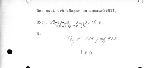 //// Det satt två kämpar en sommarkväll, //// % //// 35:4. FÖ-JO-LE. S.L.S. 46 s. //// 101-109 nr 36. //// N. ////
