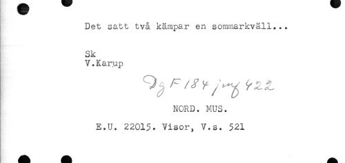 //// Det satt två kämpar en sommarkväll... //// Sk //// V.Karup //// NORD. MUS. //// E.U. 22015. Visor, V.s. 521 ////