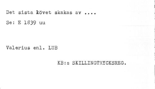 //// Det sista lövet skakas av .... //// Se: E 1539 uu //// ! //// Valerius enl. LUB //// i //// * //// KB:s SKILLINGTRYCKSREG. //// } //// = //// ! //// ! //// ! ; ////