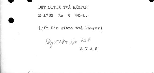 //// DET SITTA TVÅ KÄMPAR //// j .** //// ^ E 1782 Ra 9 90-t. //// (jfr Där sitta två kämpar) //// S V A S ////