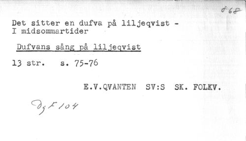 //// <7 ^ //// * * : //// Det sitter en dufva på liljeqvist - //// I midsommartider //// Dufvans sång på liljeqvist //// 13 str. s. 75-76 //// E.V.QVANTEN SV:S SK. FOLKV. ////