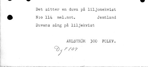 //// Det sitter en duva på liljonekvist //// A* N:o 114 mel.not. Jemtland //// Duvans sång på liljekvist //// Ni; //// ÅHLSTRÖM 300 FCLKV. //// t ' ////