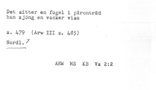 //// Det sitter en fogel i päronträd //// han sjöng en vacker visa //// s. 479 (Arw III s. 483) //// Nordl. ^ //// ARW MS KB Vs 2:2 ////