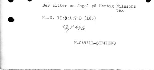 //// Der sitter en fogel på Hertig Nilssons //// tak //// ^ H.-C. II:g:A:7:D (18$) //// H-CAVALL-STEPHENS //// ----- --- ////