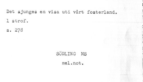 //// Det sjunges en visa uti vårt fosterland. ^ //// 5 //// 1 strof, //// s. 278 //// SÖDLING MS //// mel.not. //// i ////