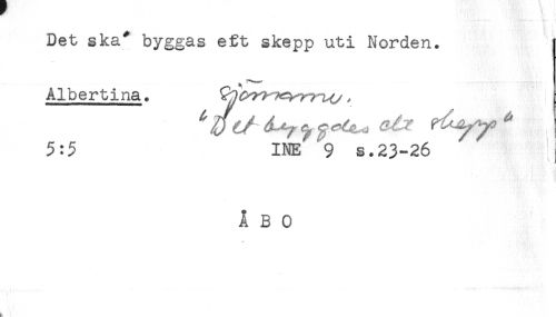//// Det ska* byggas eft skepp uti Norden. t //// Albertina. , //// 5:5 INE 9 s.23-26 j //// ÅBO ////