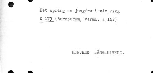 //// Det sprang en jungfru i vår ring //// ^173, (Borgström, Verml. s.I42) //// DENCKER SÅNGLEKSREG. ////