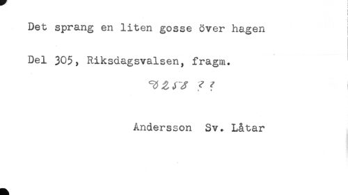 //// i //// -. i //// Det sprang en liten gosse över hagen //// < //// Del 305, Riksdagsvalsen, fragm. //// ^ ^ J V ^ f //// Andersson Sv. Låtar ////