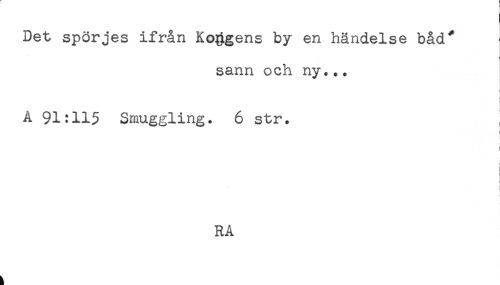 //// Det spörjes ifrån Korgens by en händelse båd* //// sann och ny... I //// < //// < //// f //// A 91:115 Smuggling. 6 str. //// < //// < //// ! //// < ////