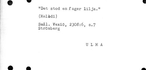 //// "Det stod en fager lilja." //// (Mel&di) //// * //// Smål. Vexiö, 2308:6, s.7 //// Strömberg //// U L M A ////