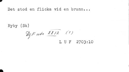 //// Det stod en flicka vid en brunn... //// *< //// Hyby (Sk) //// L U F 2703:10 ////