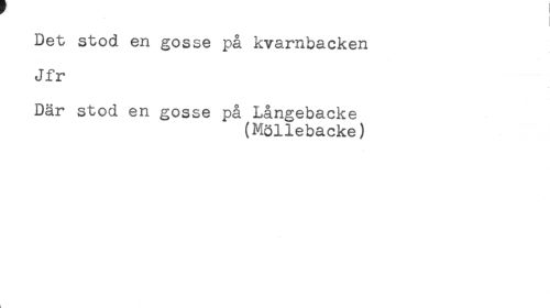 //// Det stod en gosse på kvarnbacken //// Jfr //// Där stod en gosse på Långebacke //// (Möllebacke) ////
