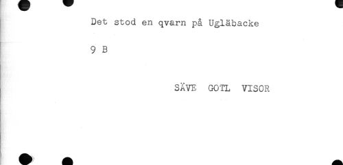 //// B.'. //// Det stod en qvarn på Ugläbacke //// 9 B //// SÅVE GOTL VISOR ////