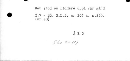 //// Det stod en riddare uppå vår gård //// . //// ^ 2:7 - Bö. S.L.S. nr 205 a. s.256. //// (nr 40) //// < //// ÅBO //// j ////