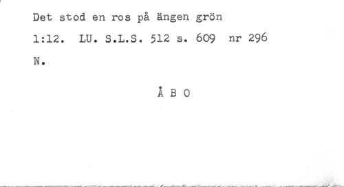 //// Det stod en ros på ängen grön //// 1:12. LU. S.L.S. 512 s. 609 nr 296 //// N. //// ÅBO ////