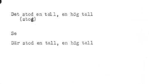 //// Det stod en täLl, en hög tall //// (stog) //// Se //// Där stod en tall, en hög tall ////