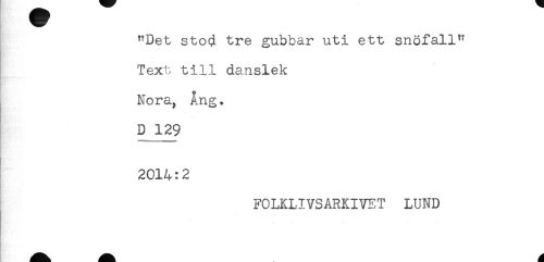 //// "Det stod tre gubbar uti ett snöfall" //// Text till danslek //// Nora, Ang. //// D 129 //// 2014:2 //// FOLKLIVSARKIVET LUND ////