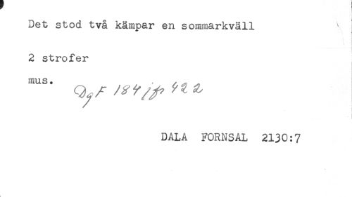 //// ) //// Det stod två kämpar en sommarkväll ^ //// 2 strofer //// Hms. . ^ . : //// DALA FORNSAL 2130:7 //// t ////