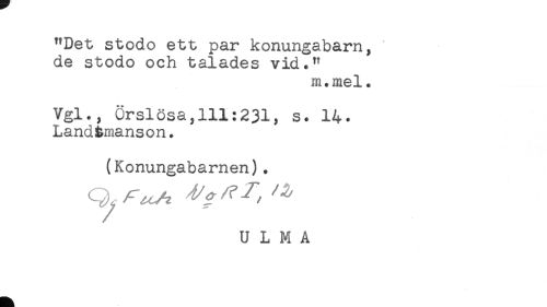 //// "Det stodo ett par konungabarn, ' //// de stodo och talades vid." //// ni. mel. //// Vgl., örslösa,lll:231, s* 14. //// Landåmanson. //// (Konungabarnen). //// U L M A ////