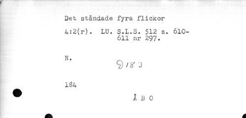 //// Det ståndade fyra flickor //// 4:2(r). LU. S.L.S. 512 s. 610- //// 611 nr 297. //// N. ^ //// j //// 164 //// ^ ÅBO ////