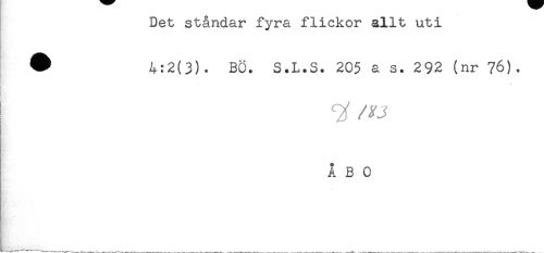 //// Det ståndar fyra flickor allt uti //// ^ 4:2(3). BÖ. S.L.S. 205 a s. 292 (nr 76). //// < //// j //// ÅBO ////