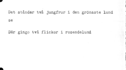 //// ! //// f //// Det ståndar två jungfrur i den grönaste lund ' //// a //// i //// se //// L //// h //// i- //// Där gingo två flickor i rosendelund ^ //// < //// ! //// I //// h //// - //// ! //// - //// = ////