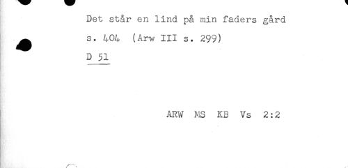 //// Det står en lind på min faders gård //// ^ s. 404 (Arw III s. 299) //// D 51 //// ARW MS KB Vs 2:2 //// A ////