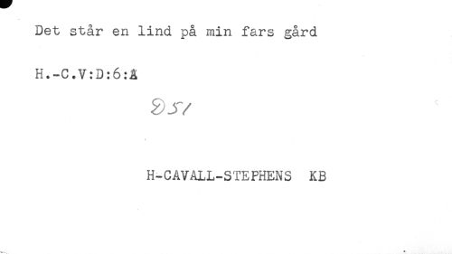 //// Det står en lind på min fars gård //// H.-C.V:D:6:& //// f //// H-CAVALL-STEPHENS KB ////