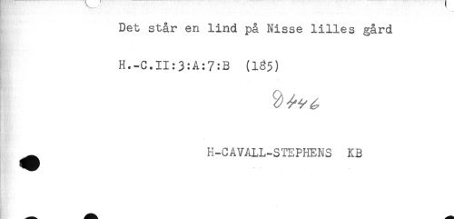 //// H'.. .... / . , . ' //// Det står en lind på Nisse lilles gård //// H.-C.II:3:A:7:B (1^5) //// H-CATALL-STEFHENS KB ////