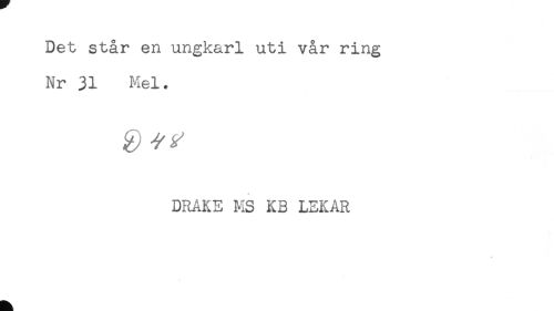 //// Det står en ungkarl uti vår ring //// Nr 31 Mel. //// DRAKE MS KB LEKAR //// * ////