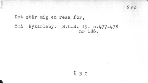//// My . . ,.*. <) < '*. t<' < < * ) - ^ v- - * 'H Q! //// ^ $ //// Det står mig en resa för, //// 6:4 Nykarleby. S.L.S. 19. s.477-478 //// nr 186. //// ÅBO ////