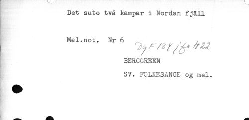 //// Det suto två kampar i Nordan fjäll //// Mel.not. Nr 6 , . . //// BERGGREEN //// SV. FOLKESANGE og mel. ////