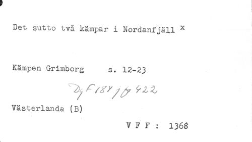 //// i //// i //// Det sutto två kämpar i Nordanfjäll x //// Kämpen Grimborg s. 12-23 //// Västerlanda (B) //// V F F : 1368 //// t ////