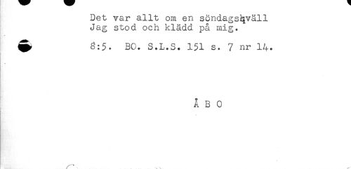 //// Det var allt om en söndagskväll //// Jag stod och klädd på mig. //// ^ 3:5. BO. S*L.S. 151 s* 7 nr 14. //// * //// ÅBO ////