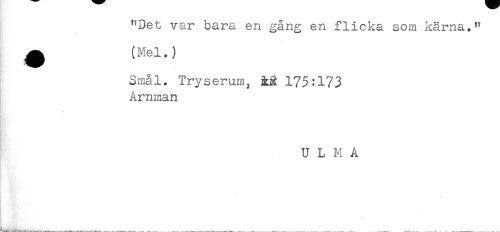 //// "Det var bara en gång en flicka som kärna." //// ^ (Mel.) //// Smål. Tryserum, M 175:173 //// Amman //// U L M A ////