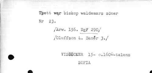 //// —— - t,., , ^ ^ _ . . _ .. //// T^ett wqr biskop waldemars söner //// Nr 23. //// /Arw. 1$6. DgF 290 //// //Oluffson 4. Banår 3. //// /^ VISBBCKER 1$- o.l600-talens //// SOFIA ////