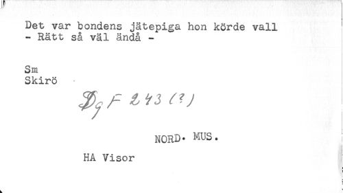 //// Det var bondens jätepiga hon körde vall //// - Rätt så väl ändå - //// Sm //// Skirö //// NORD- MUS. //// i //// HA Visor //// É //// t. //// k ////