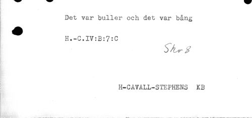 //// Det var buller och det var bång //// ^ H.-C.IV:B:7:C //// i //// ! //// * //// i //// H-CAVALL-STEPHENS KB //// i ////