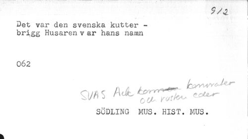 //// Det var den svenska kutter - //// brigg Husaren v ar hans namn //// 062 //// SÖDLING MUS. HIST. MUS. ////