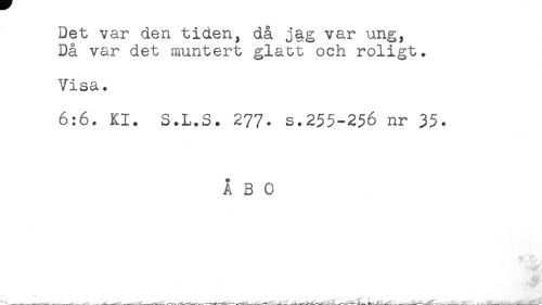 //// Det var den tiden, då j§g var ung, //// Då var det muntert glatt och roligt. //// Visa. //// 6:6. Kl. S.L.S. 277- s.255-256 nr 35. //// ÅBO //// ''lA-.i*''*' //// # //// ____._—.___ _____.... ////