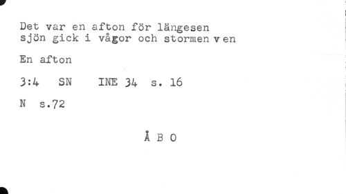 //// ) //// ! //// Det var en afton för längesen //// sjön gick i vågor och stormen ven //// En afton //// j //// 3:4 SN INE 34 s. 16 //// < //// N s.72 //// ÅBO ////