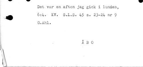 //// Det var en afton jag gick i lunden, //// ! //// ^ 6:4. KV. S.L.S. 45 s. 23-24 nr 9 //// * //// G.Ahl. //// ÅBO ////