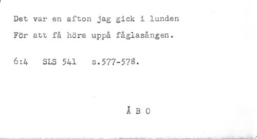 //// Det var en afton jag gick i lunden //// För att få höra uppå fåglasången. //// 6:4 SLS 541 s.577-573. //// * ////