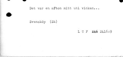 //// Det var en afton mitt uti vickan..* //// Svensköp (Sk) //// < ^ //// L U F 2416:9 //// * ////