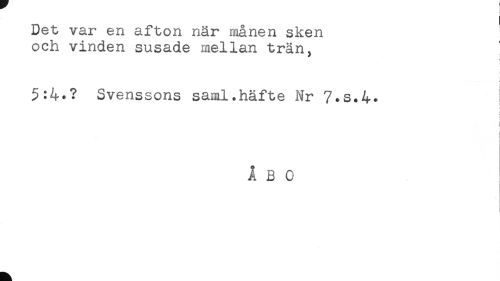 //// Det var en afton när månen sken //// och vinden susade mellan trän, //// t //// < //// Svenssons saml.häfte Nr 7.S.4. ! //// i //// i //// i //// ÅBO ////