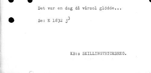 //// Det var en dag då vårsol glödde... //// # Se: E 1332 //// t //// i //// f //// KB:s SKILLINGTRYCKSREG. ////
