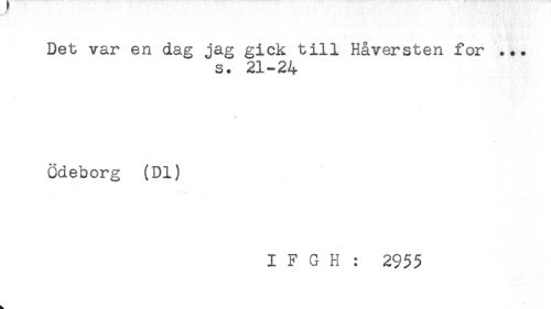 //// Det var en dag jag gick till Håversten for ... //// s. 21-24 //// Ödeborg (Dl) //// I F G H : 2955 ////
