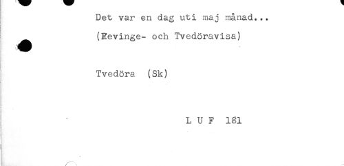 //// ! Det var en dag uti maj månad... //// (Eevinge- och Tvedöravisa) //// Tvedöra (Sk) //// ) //// < //// L U F 181 //// r......- ////