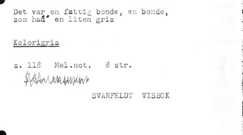 //// Det var en fattig bonde, en bonde, ! //// som had* en liten gris //// Kolorigris //// s. 113 Mel.not. 3 str. ! //// j //// SVANFELDT VISBOK //// < //// B //// ). //// F //// L ////